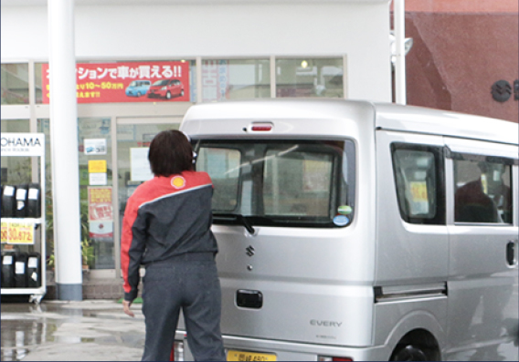 セルフのスタンドと同じ外観をしておりますが、窓拭き、車内の片付け、