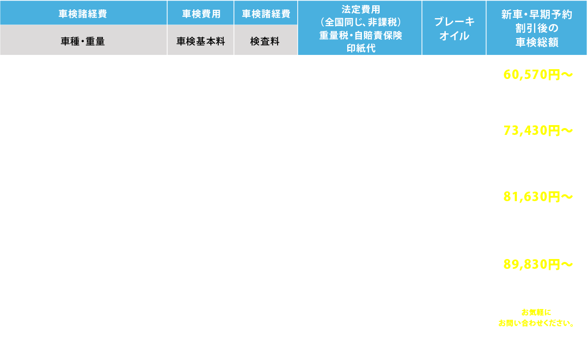 ※一部お取り扱いできない車種があります。 ※輸入車はご相談ください。料金が変更します。