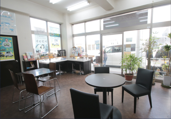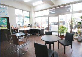 敷地内に板金・塗装工場を併設、レンタカーや車の売買も行っています。