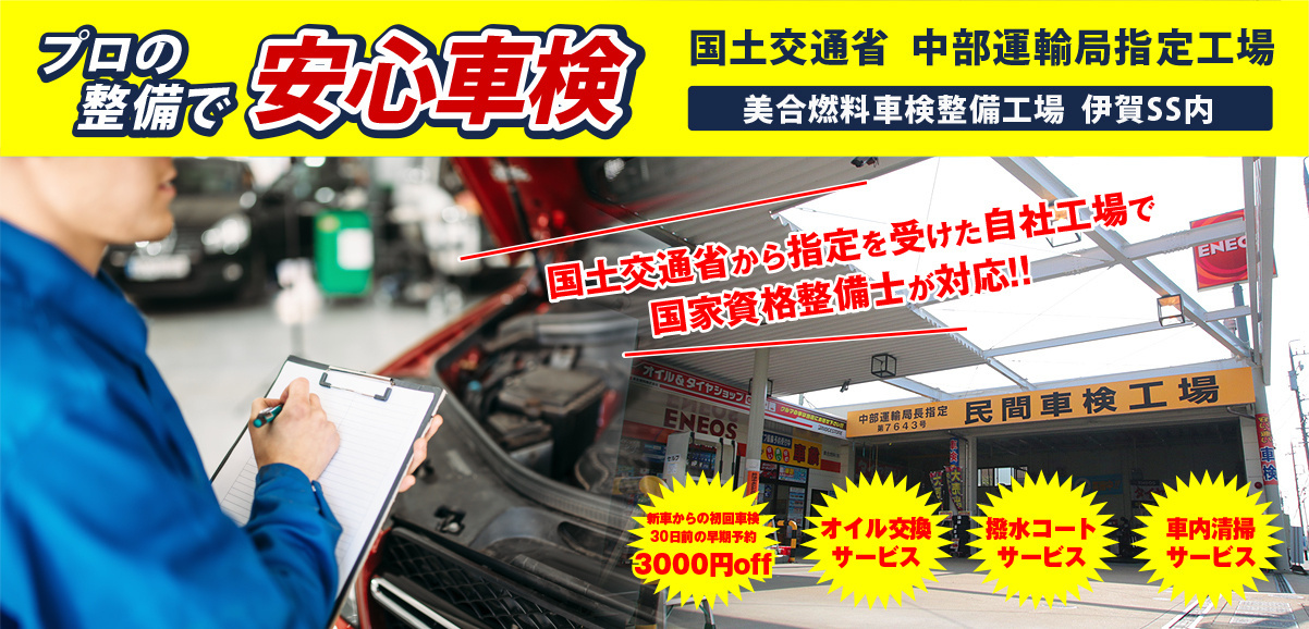 車検は伊賀SSでお取扱をしております。