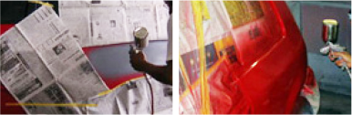 慎重に調合された塗料を吹き付けます。